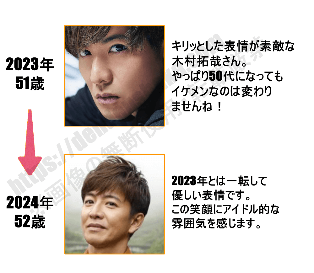 ※木村拓哉さんは11月が誕生日ですが、年表と言う事で52歳で表記しています(記事作成時8月)