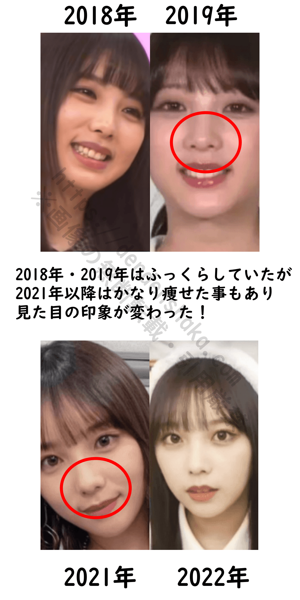 2017年から2018年、そして2019年から2020年にかけて、少しずつ鼻筋が通ってきたように見えます。