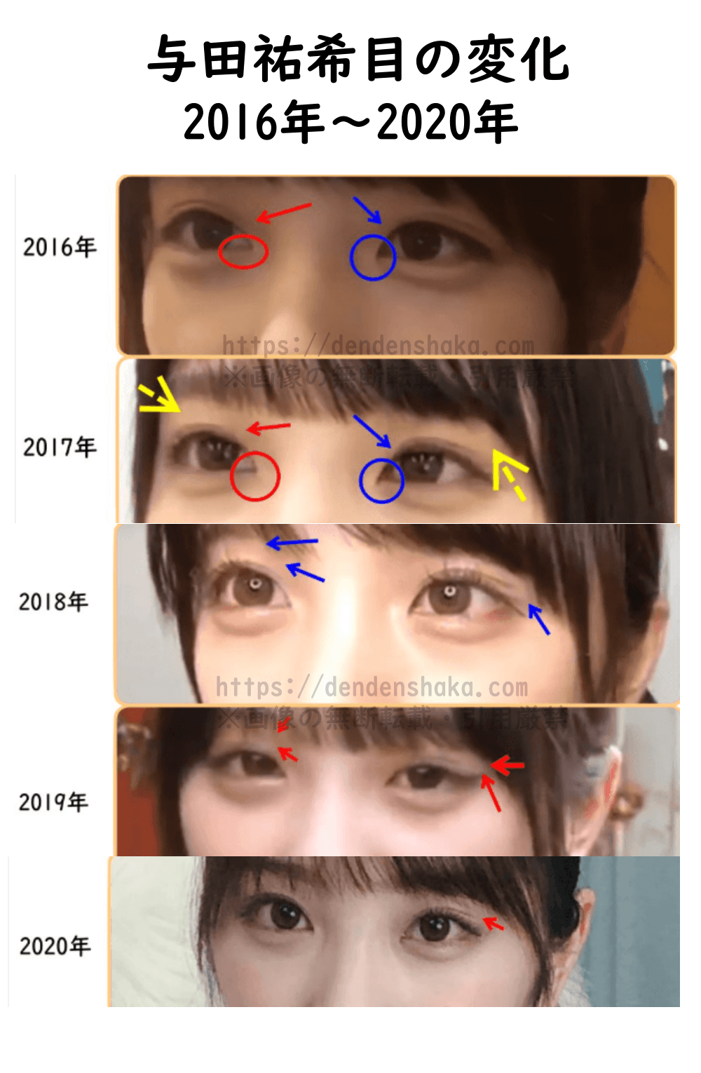 与田ちゃんは長年、アイテープやアイプチを使っていた形跡が過去のすっぴん風画像から何度も確認されています。
