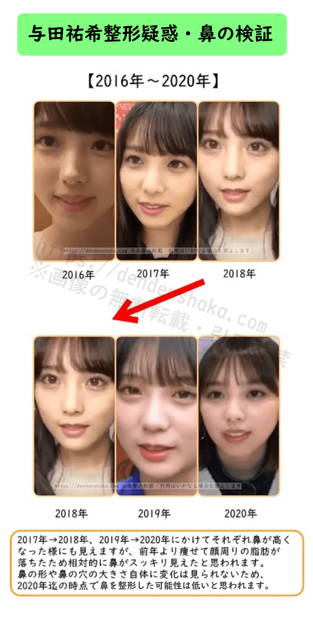 数々の無加工画像や動画をすり減るほど検証した結果、与田祐希さんは整形していません!