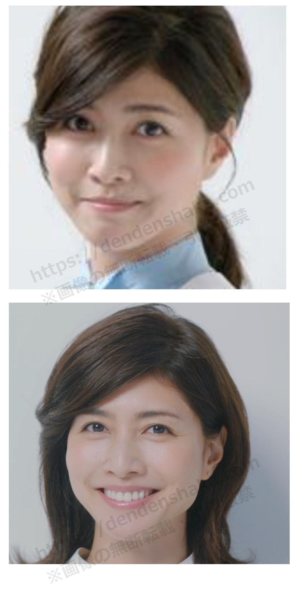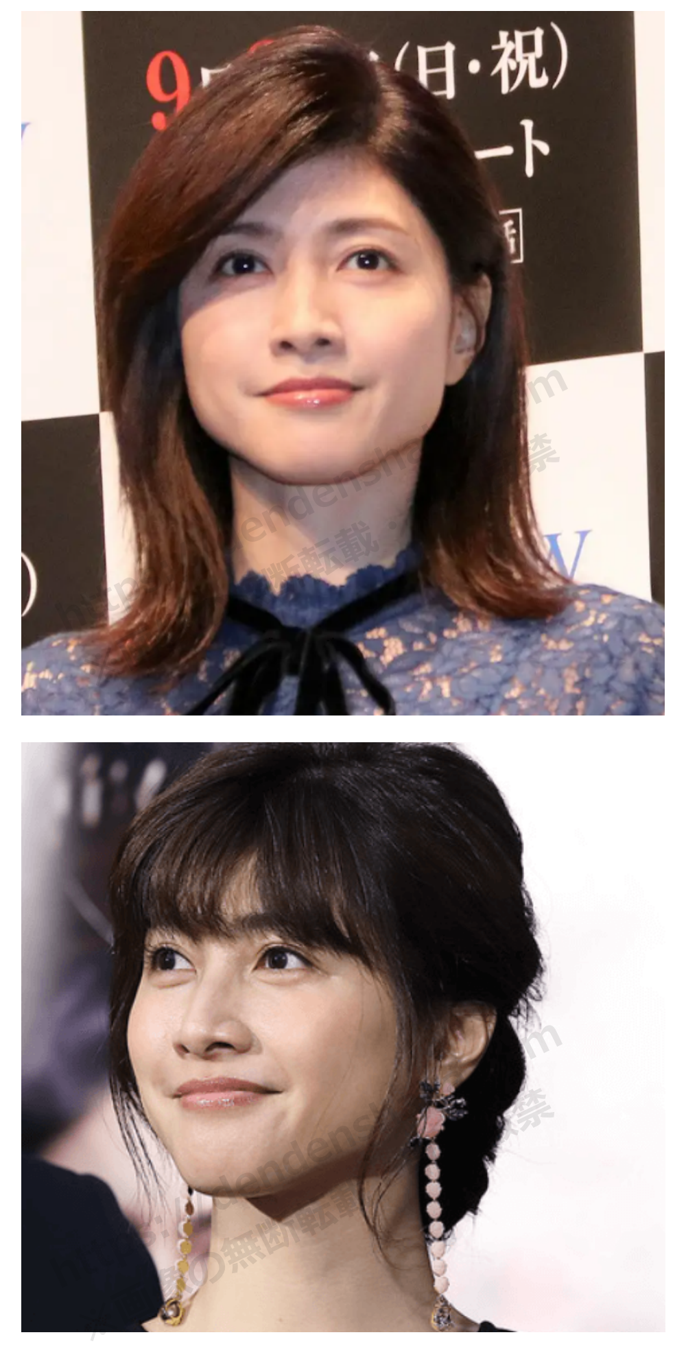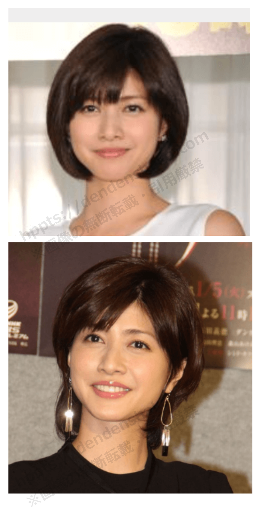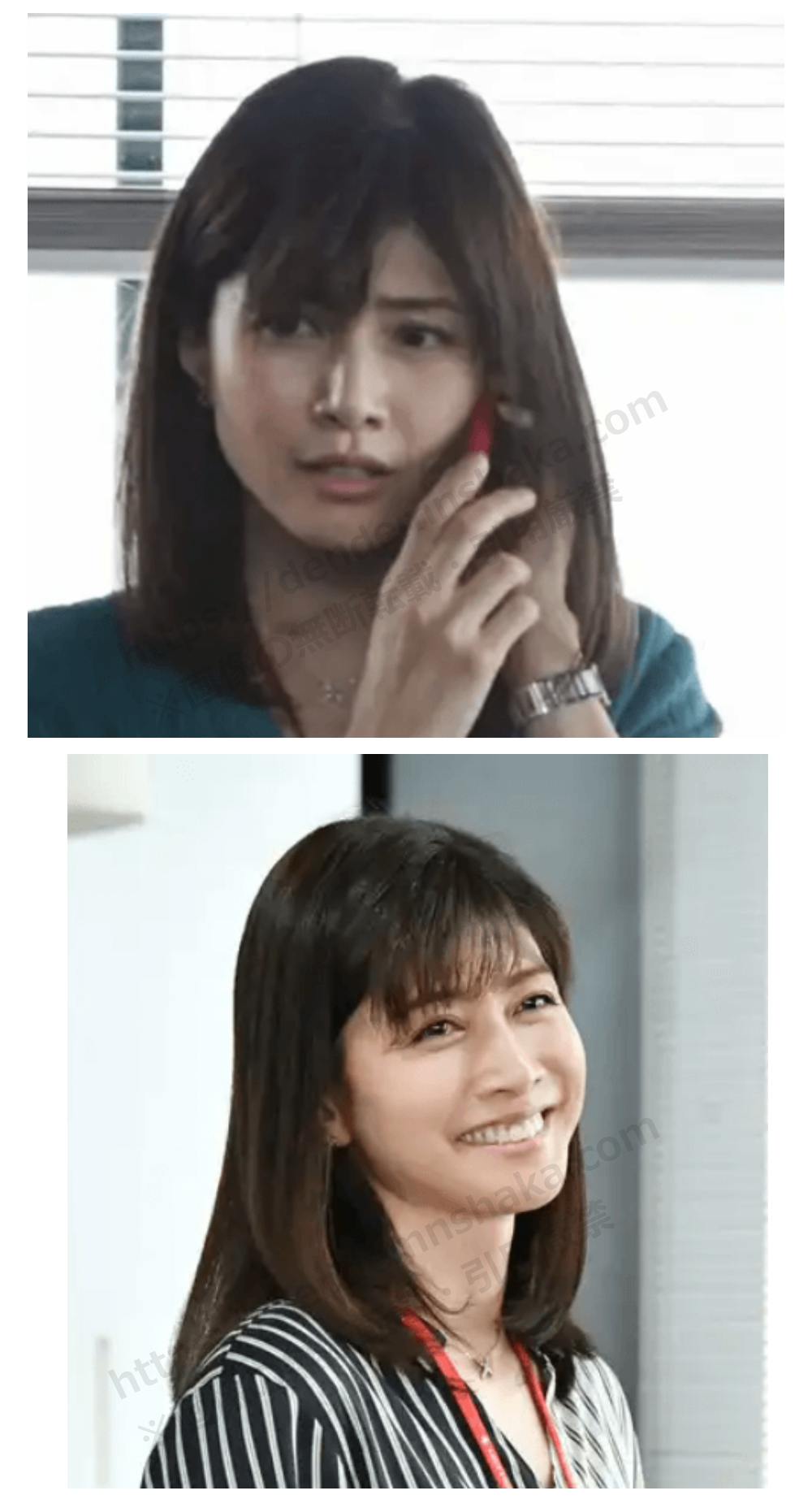 笑顔の時はそんなに似てる感じは受けないのですが、少しカールさせた髪型でキリっとした表情の内田有紀さんが一瞬松嶋菜々子さんに見えました(2番目の画像)。
